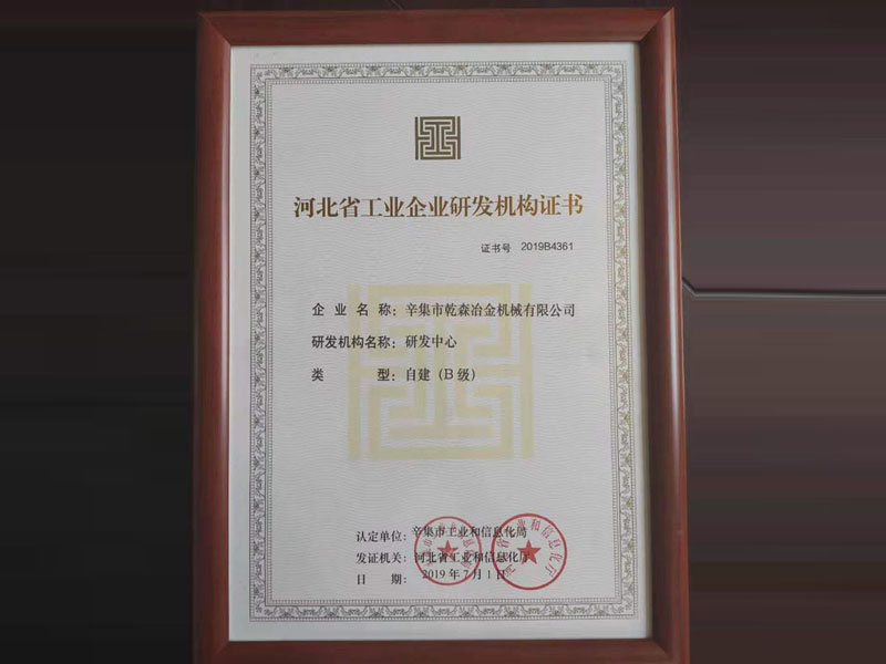 河北省工業(yè)企業(yè)研發(fā)機構(gòu)證書